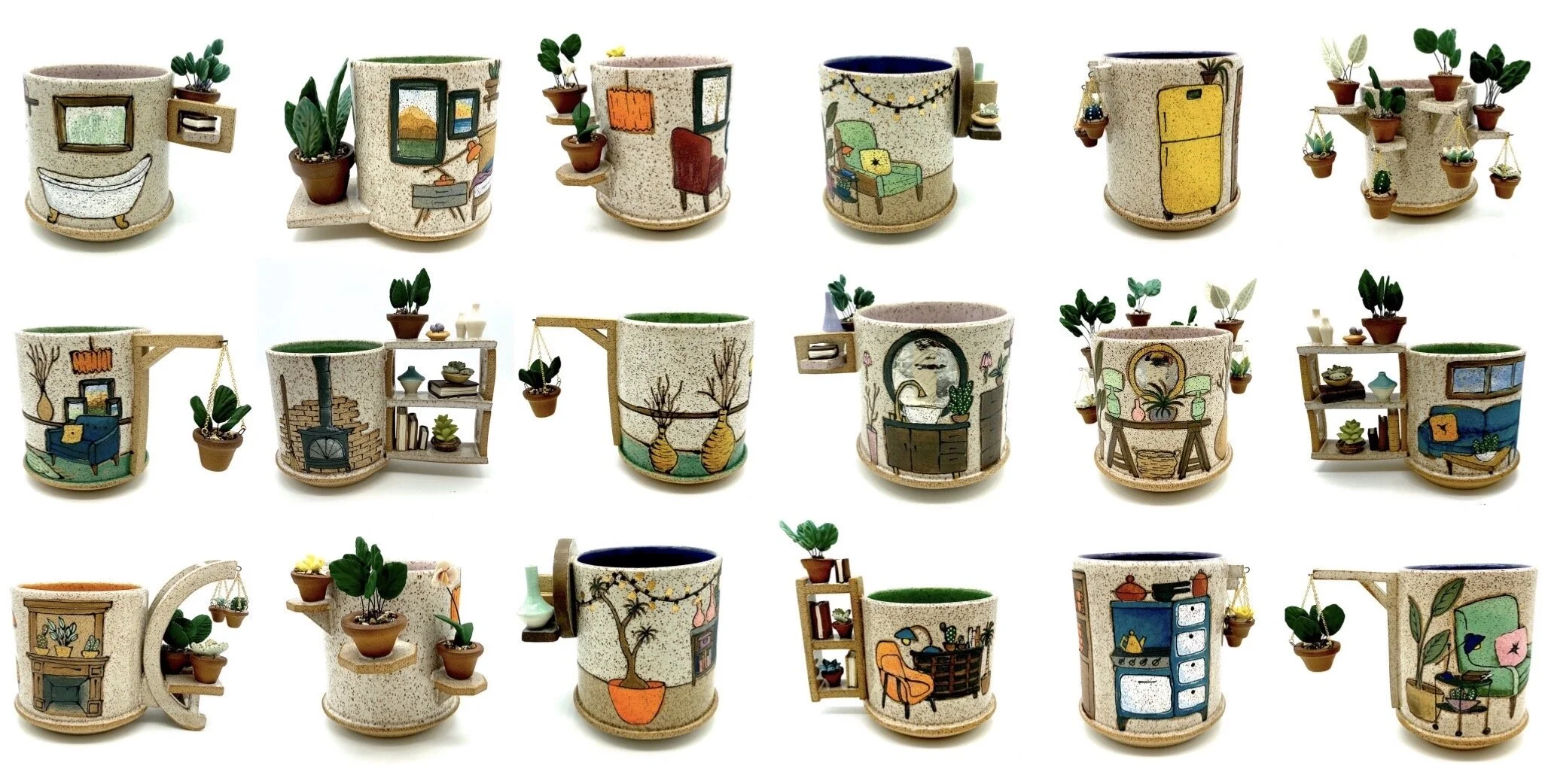 Wood, Soil, Pea Gravel, Roots, Porcelain, Underglaze,